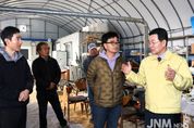 제이앤엠뉴스 | 부안군은 권익현 군수가 5일 상서면에 위치한 스마트팜 농가를 찾아 현장 상황을 점검하고 농업인들의 의견을 들었다고 밝혔다. 이번 현장 방문은 기후 변화와 생산비 증가 등으로 어려움을 겪는 농업인들의 고충을 직접 듣고, 소득 품목 육성 지원사업 등 주요 보조사업이 실제로 농가에 어떤 효과를 주고 있는지 확인하기 위해 진행됐다. 이날 방문한 박홍래 농가는 시설복숭아연구회 회장으로, 군의 지원을 받아 무인방제기와 유동휀 등 스마트팜 장비를 도입해 노동력을 줄이고 품질 향상에 주력하고 있다. 박 회장은 하우스 내부의 온도와 습도를 세밀하게 조절해 개화기 저온 피해를 최소화하고 있으며, 이로 인해 과실의 균일도와 당도가 높아져 시장에서의 신뢰도도 상승하고 있다고 설명했다. 권익현 군수는 현장에서 "시설원예 분야는 기후변화 대응과 스마트 기술 도입이 경쟁력을 좌우하는 중요한 요소"라며, "현장 의견을 반영해 지원사업의 실효성을 높여 나가겠다"고 말했다.