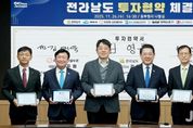 제이앤엠뉴스 | 전라남도는 26일 동부청사에서 여수그린에너지㈜, ㈜한화 글로벌부문, ㈜LX MMA 등과 1조 2천441억 원, 고용 창출 147명 규모의 투자협약을 했다. 협약식에는 김영록 전남도지사와 한상훈 여수그린에너지㈜ 대표이사, 김태욱 ㈜한화 글로벌부문 머티어리얼(Material)사업부장, 김창호 ㈜엘엑스 엠엠에이(LX MMA) 공장장, 정기명 여수시장 등이 참석했다. 전남도는 이번 투자가 여수국가산단의 범용 석유화학 소재 중심 산업구조를 친환경·바이오·고부가가치 산업으로 전환하는 첫걸음이 될 것으로 기대하고 있다. 또한 대규모 설비 투자에 따라 건설·물류·서비스업 등으로 고용이 확대돼 지역 고용 안정에도 도움이 될 전망이다. 투자협약에 따라 여수그린에너지는 1조 원을 투자해 여수산단 입주 기업에 전력·스팀을 안정적으로 공급하기 위한 LNG 복합화력발전소를 건설한다. 스팀과 전력을 동시에 생산해 에너지 이용 효율을 높이고, 석탄화력발전 대체를 통한 친환경에너지 정책에도 기여하겠다는 계획이다. 한화 글로벌부문은 바이오의약품 제조 공정에 필수적으로 사용되는 완충용액의 핵심 원료인 고순도 트리스(
