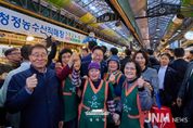 제이앤엠뉴스 | 이재명 대통령과 김혜경 여사는 1박 2일 제주 방문 마지막 일정으로 30일 오후 제주시 동문시장을 찾았다. 동문시장은 제주시 중심에 자리한 전통시장으로, 대통령 부부의 방문에 상인들과 방문객들은 환호와 박수로 반겼다. 시장 입구에서 이재명 대통령이 한 외국인 관광객에게 국적을 묻자, 그 관광객은 “오스트레일리아”라고 답했다. 시장 곳곳을 둘러보며 이재명 대통령 부부는 셀카 촬영과 악수 요청에 응하며, 과일모찌 가게에서 온누리상품권으로 한라봉모찌와 딸기모찌를 구입해 강유정 대변인, 하정우 수석 등과 함께 현장에서 시식했다. 이동 중에도 셀카 요청이 이어졌고, 도민들은 “사랑해요”, “와 대박”, “화이팅” 등 다양한 응원의 말을 전했다. 이재명 대통령은 특히 어린이들과 사진을 찍거나 하이파이브를 하며 적극적으로 소통했다. 강아지를 안고 있던 시민과도 함께 사진을 찍었고, 떡집에서는 오메기떡을 사서 참모진에게도 권했다. 야채가게와 생선가게에서는 애호박, 마늘대, 제주산 은갈치, 포장된 간고등어를 구입하며 상인들에게 “많이 파시라”는 말을 건넸다. 김혜경 여사는 김치와 젓갈류 매장에서 고추장아찌를 구매했고, 이재명 대통령은 얼갈이 배추김치를 사달라