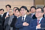 제이앤엠뉴스 | 논산시의회는 새해 첫 공식 일정으로 2일 오전 충령탑 등을 방문하여 순국선열과 호국영령의 희생을 추모하며 참배를 실시했으며 이어 시의회 1층 회의실에서 ‘새해 인사식’을 개최했다. 새해 인사식에는 조용훈 의장을 비롯한 의원들과 의회사무국 직원 그리고 백성현 논산시장과 간부 공무원들이 참석했으며 행사는 국민의례, 신년 인사말, 소통의 시간, 케이크 컷팅 및 건배, 기념사진 촬영 순으로 진행 됐다. 조용훈 의장은 “2026년은 ‘붉은 말의 해’ 병오년이다. 새해에는 병오년의 뜨거운 기운을 받아 시민 여러분 모두의 가정에 평안과 행복이 가득하시길 기원드린다”며 “2026년에도 시의회와 집행부는 상호 상생과 협치를 바탕으로 함께 힘을 모아 오직 시민만을 바라보면서 시민 삶의 질 향상과 지역 경제 활성화를 위해 최선을 다하겠다”고 인사말을 전했다. [뉴스출처 : 충남 논산시의회]