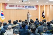 제이앤엠뉴스 | 음성군은 2일 군청 대회의실에서 직원 150여 명이 참석한 가운데 시무식을 열고 2026년 새로운 발전과 도약을 다짐했다. 이날 조병옥 군수는 신년사를 통해 2025년 한 해를 군민 여러분과 함께 위기를 극복하고 ‘2030 음성시 건설’을 위한 기틀을 착실히 다진 한 해라며 군민과 공직자들에게 고마움을 전했다. 또 올해 역점 정책 추진 방향으로 △지역경제 회복을 넘어 경제도약 발판 마련 △청년을 비롯해 인구가 유입되는 탄탄한 도시기반 조성 △따뜻한 복지 강화와 기본이 튼튼한 사회 구현 △품격 있는 교육·문화·관광도시 조성 △농업 경쟁력 강화로 행복한 농업·농촌 구현 △군민이 안심하는 안전하고 쾌적한 도시 조성 △성공적인 도민체전 개최와 생활체육 인프라 확충을 제시했다. 조 군수는 직원들에게도 “군민에게 신뢰받는 군정이 되도록 투명·공정·정의로운 행정을 펼쳐 달라”고 당부했다. 또 “2026년에도 도시 경쟁력을 키우고 ‘더 큰 음성’을 향한 지속 가능한 성장 동력을 탄탄히 만들어 가겠다”면서 “병오년 새해 힘차게 대지를 달리는 적토마처럼 음성군이 더 높이 도약할 수 있도록 군민 여러분