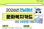 제이앤엠뉴스 | 광양시는 도내 청년들의 문화 향유 기회 확대와 자기계발을 지원하기 위해 ‘2026년 전남청년 문화복지카드 지원사업’ 신청 접수를 2월 9일부터 실시한다고 밝혔다. 전남청년 문화복지카드 지원사업은 전라남도에 거주하는 청년에게 체크카드 바우처 방식의 문화복지카드를 지급하는 사업으로, 1인당 연 최대 25만 원을 지원한다. 지원 대상은 19세 이상 28세 이하(1998~2007년도 출생자) 청년으로, 신청 개시일 기준 전라남도에 2년 이상 계속 거주하고(2024년 2월 9일 이전부터 도내 거주), 신청일 기준 주민등록상 주소지가 광양시로 되어 있어야 한다. 특히 올해부터는 문화누리카드 지원 대상자도 전액 지원을 받을 수 있도록 제도가 개선됐다. 다만 기존과 같이 ▲복지포인트를 지급받는 공공기관 근무자 ▲학교 밖 청소년 교육수당 지급 대상자 ▲여성농어업인 행복바우처 대상자는 지원 대상에서 제외된다. 신청 기간은 2월 9일부터 3월 31일까지로, 기간 중 상시 신청이 가능하다. 신청은 주소지 읍·면·동사무소 방문 신청 또는 광주은행 누리집을 통한 온라인 신청 중 선택