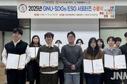 제이앤엠뉴스 | 경상국립대학교 지속가능발전센터는 2월 11일 칠암캠퍼스에서 ‘2025년 GNU-SDGs/ESG 서포터즈 수료식’을 개최했다. 이날 수료식은 지속가능발전센터 소속 직원들이 참석한 가운데 센터장 인사말을 시작으로 수료증 수여 순으로 진행됐다. 참석자들은 한 해 동안 적극적으로 활동한 서포터즈 학생들의 노고를 격려하고 활동 성과를 공유했다. ‘GNU-SDGs/ESG 서포터즈’는 재학생이 직접 프로그램을 기획·운영하고 성과를 환류하는 학생 주도형 활동으로, 교내외 SDGs(지속가능발전목표) 및 ESG 가치 확산과 실천 문화 정착을 목적으로 운영되고 있다. 2025년 제4기 GNU-SDGs/ESG 서포터즈는 지난 5월 발대식을 시작으로 ▲대동제 SDGs 체험부스 ▲분리수GO! 캠페인 부스 ▲공정무역 인식 제고 캠페인 부스 등 다양한 프로그램을 기획·운영하며 학내 구성원의 참여를 이끌어 냈다. 이로써 일상 속 실천을 기반으로 한 지속가능성 인식 확산에 기여했다. 김영철 경상국립대학교 지속가능발전센터장은 “GNU-SDGs/ESG 서포터즈는 학생들이 주체가 되어 지속가능성과 ESG 가
