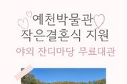 제이앤엠뉴스 | 예천박물관은 오는 3월부터 야외 잔디마당을 ‘작은결혼식’ 장소로 무료 대관한다고 밝혔다. 이번 사업은 과도한 결혼 비용과 형식 중심의 예식 문화에서 벗어나, 실속 있고 가치 중심의 결혼식을 장려하기 위해 마련됐다. 특히 자연 친화적이고 개방감 있는 예천박물관 야외 잔디마당의 공간적 특성을 살려 가족·친지 중심의 따뜻한 예식을 지원할 계획이다. 대관 대상은 신청일 현재 부부 중 1인 이상이 예천군에 주소를 두고 있는 예비 부부로, 신청을 희망하는 경우 예천박물관 홈페이지에서 신청서를 내려받아 작성 후 제출하면 된다. 예식은 양가 하객 100명 이하의 소규모로만 가능하며, 음식 제공은 음료에 한해 허용되고 피로연은 금지된다. 김상식 문화관광과장은 “박물관의 아름다운 잔디마당이 예비부부들에게는 실속 있고 특별한 추억의 장소가 되길 기대한다”며 “이용객들이 불편함 없이 생애 가장 빛나는 순간을 맞이할 수 있도록 운영과 지원에 최선을 다하겠다”고 말했다. [뉴스출처 : 경상북도 예천군]