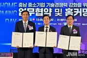 제이앤엠뉴스 | 충남도는 3일 아산 디바인밸리에서 ‘충남 중소기업 기술 경쟁력 강화를 위한 업무협약식’을 개최했다. 김태흠 지사와 박주선 기술보증기금 전무이사, 서규석 충남테크노파크 원장, 도내 중소기업인 등 300여 명이 참석한 가운데, 업무협약식을 진행했다. 이날 도는 기술보증기금·충남테크노파크와 함께 중소기업의 연구개발(R·D)부터 기술 이전·사업화에 이르는 전주기 지원체계 구축을 목표로 ‘충남 중소기업 기술 경쟁력 강화를 위한 업무협약’을 체결했다. 이번 협약으로 도는 연구개발 전주기 지원과 기술 이전 및 사업화 촉진을 위한 정책적·재정적 지원에 나선다. 기보는 기술 평가·보증·기술 이전 등 금융·비금융 지원을 수행하고, 충남TP는 연구개발 지원 절차 구축, 기술 이전 연계, 사업화 촉진 등 기술 기반 기업 지원 기능을 강화하기로 했다. 도는 이번 협약으로 기보와 협업해 핵심 사업인 ‘기업 맞춤 연구개발-사업화 전주기 지원사업’과 ‘소부장기업 기술이전 사업화 지원사업’을 본격 시행한다. 기업 맞춤 연구개발-사업화 전주기 지원사업을 통해 중소기업을 대상으로 기보의 보증
