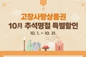 제이앤엠뉴스 | 고창군이 추석을 맞아 군민 생활안정과 지역경제 활성화를 위해 ‘고창사랑상품권 특별할인 행사’를 진행한다. 이번 행사는 10월 한 달간 진행된다. 이번 특별할인은 △상품권 구매시 10% 선할인 △고창사랑카드 결제시 10% 캐시백 적립을 통해 최대 20% 혜택을 받을 수 있도록 구성됐다. 특히, 월 구매한도를 100만 원까지 확대해 군민들의 혜택을 더욱 강화했다. 예를 들어, 10만원 상품권 구매 시 10%(1만 원) 선할인을 적용받아 9만원에 구매하고, 이후 고창사랑카드로 결제하면 결제금액의 10%가 캐시백으로 적립돼 실질적으로 최대 20% 혜택을 누릴 수 있다. 다만, 선할인(10%)이 적용된 금액은 캐시백 적립 대상에서 제외된다. 심덕섭 고창군수는 “이번 추석 명절 특별 할인을 통해 군민들께는 생활비 부담을 덜어드리고, 지역 소상공인들에게는 매출 증대 효과가 기대된다”며 “특히, 군에서 지급하는 군민활력지원금과 정부의 민생소비쿠폰이 더해져 군민 모두가 더욱 넉넉한 추석 명절을 보내시길 바란다”고 밝혔다. 한편, 고창사랑상품권은 전통시장과 지역 내 가맹점에서