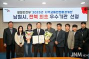 제이앤엠뉴스 | 남원시가 행정안전부 주관 ‘2025년 지역교통안전환경개선’ 평가에서 전국 우수 지자체로 선정되어 행정안전부 장관 표창을 수상했다. 이번 평가는 행정안전부가 전국 지자체를 대상으로 교통안전 인프라 개선 실적과 사고 예방을 위한 정책적 노력 등을 종합적으로 심사하여 진행됐다. 남원시는 지역교통안전환경개선 분야에서 전북특별자치도 내 시·군 중 최초 장관 표창 대상 기관으로 선정되며 도로 행정의 우수성을 입증했다. 남원시는 그간 ‘튼튼한 내일, 견고한 오늘’이라는 슬로건 아래 시민의 안전과 편익을 최우선으로 하는 다양한 도로 교통 환경 개선 사업을 추진해 왔다. 특히 송동교 앞 외 3개소 회전교차로 설치를 통해 교통사고를 방지하는 실질적인 성과를 거두었으며, 춘향교 삼거리 등 사고가 잦은 곳에 대한 선제적 시설 정비로 교통안전 증진에 기여해 높은 평가를 받았다. 또한 선제적인 보행환경개선지구 지정·고시(23.1.13.)를 통해 옥샘길, 동부시장길 등 14개소에 보행자우선도로 조성을 완료했다. 이와 더불어 운봉초·중학교 등 5개 구역에 그린뉴딜 지중화사업을 추진함에