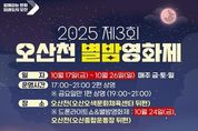 제이앤엠뉴스 | 오산시는 오는 10월 17일부터 26일까지 매주 금·토·일 저녁, 오산천(오색문화체육센터 뒤편)에서 시민들이 야외에서 영화를 즐길 수 있는 '2025 제3회 오산천 별밤영화제'를 개최한다고 밝혔다. 이번 영화제는 남녀노소 누구나 즐길 수 있는 총 10편의 애니메이션과 영화를 상영하며, 오산천을 방문하는 시민이라면 누구나 자유롭게 관람할 수 있다. 특히 올해는 관람객 편의를 위해 ‘배달음식 픽업존’을 운영하여, 휴대폰 앱으로 주문한 음식을 지정된 장소에서 간편하게 수령할 수 있다. 관람객들은 돗자리나 방석 등을 지참해, 자연 속에서 맛있는 음식과 함께 여유로운 영화 관람을 즐길 수 있다. 시 관계자는 “도심 속 자연과 문화가 조화를 이루는 오산천에서 열리는 이번 별밤영화제가 시민들에게 힐링과 특별한 문화 체험의 기회가 되길 바란다”고 전했다. [뉴스출처 : 경기도 오산시]