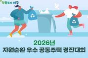 제이앤엠뉴스 | 광주광역시 서구가 관내 100세대 이상 공동주택 204개소를 대상으로 ‘2026년 자원순환 우수 공동주택 경진대회’를 개최한다. 서구는 올바른 분리배출과 음식물쓰레기 감량 문화 정착을 위해 2013년부터 경진대회를 추진해 오고 있다. 서구는 올해 3월부터 10월까지 ▲음식물류 폐기물 감량실적(70점) ▲폐건전지·폐형광등 수거 실적(10점) ▲재활용품 분리배출 실태(10점) ▲자원순환 실천 주민 참여도(10점) 등을 종합적으로 평가해 오는 11월 우수 공동주택 10곳을 선정하고 총 2000만원의 포상금을 차등 지급할 계획이다. 참여를 희망하는 공동주택은 3월13일까지 서구청 누리집 공지사항의 관련 서류를 준비해 서구청 자원순환과에 방문하거나 전자우편 등으로 제출하면 된다. 서구는 3월 중 참여자 대상 사업설명회를 열어 경진대회 추진 절차와 실적 평가 기준 등 자원순환 실천 방안을 안내할 예정이다. 이판구 자원순환과장은 “자원순환 우수 공동주택 경진대회를 통해 주민 참여를 기반으로 자원순환 실천 문화가 지속적으로 확산될 수 있도록 노력하겠다”고 말했다. 한편 서구는 지난해