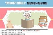 제이앤엠뉴스 | 안성시 중앙도서관은 오는 10월 29일부터 12월 24일까지 매주 수요일 오전 10시부터 12시까지(총9회) 진행되는 『옛이야기 할머니』양성과정의 수강생을 모집한다. 이번 과정은 우리 전통 설화와 구전문화를 이해하고, 이를 바탕으로 어린이들에게 옛이야기를 들려줄 수 있는 이야기 구연 역량을 키우는 특화 교육 프로그램으로 교육은 송경애 강사(한국국학진흥원 및 아름다운 이야기 할머니 교육강사)가 진행하며, 이야기 전달 기법, 발성 훈련, 스토리텔링 실습 등 실질적인 교육 중심으로 구성된다. 참여 대상은 60세 이상 여성 20명으로, 접수는 10월 14일부터 도서관 홈페이지, 전화 또는 방문을 통해 신청할 수 있다. 도서관 관계자는 “지역 어르신들이 삶의 지혜와 전통 이야기를 전하며 세대 간 소통의 다리를 놓는 뜻깊은 과정이 될 것이고 본 과정을 수료한 참여자들은 2026년 ‘책 읽어주기’ 자원봉사 프로그램에 참여할 수 있도록 안내할 계획이다.”라고 전했다. [뉴스출처 : 경기도 안성시]