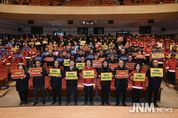 제이앤엠뉴스 | 홍성군은 지난 9일 홍주문화회관에서 산불 예방인력 및 관계 공무원 등 400여 명이 참석한 가운데 ‘2026년 산불 지킴이 발대식’을 개최하고 본격적인 산불 방지 총력 대응에 돌입했다. 이날 발대식에는 명예산불감시원을 비롯해 산림재난대응단, 산불감시원 및 산불진화단(공무원진화대) 등 홍성군의 산불 방지 핵심 인력이 총출동했다. 참석자들은 결의문 낭독을 통해 산불 예방 활동에 앞장설 것을 다짐하며 ‘산불 ZERO 홍성군’을 위한 강력한 의지를 표명했다. 군은 위촉된 명예산불 감시원들에게 산불 근무복과 전자 호루라기를 제공하여 현장 대응력을 높였으며, 이어진 산불방지 교육을 통해 산불 발생 시 신고 요령, 안전 수칙, 초동 진화 방법 등 실무 위주의 전문 교육을 실시했다. 이용록 홍성군수는 인사말을 통해 “산불은 예방이 최우선이며, 마을 실정을 잘 아는 명예 산불감시원과 산림재난대응단 여러분의 역할이 무엇보다 중요하다”고 강조하며, “군민 모두가 경각심을 가지고 소중한 우리 산림을 지키는 데 적극 동참해 달라”고 당부했다. [뉴스출처 : 충청남도 홍성군]