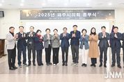 제이앤엠뉴스 | 파주시의회는 12월 31일 오후 2시, 파주시의회 1층 세미나실에서 2025년 종무식을 개최하면서 우수의원 표창에 대한 표창 전수식을 진행했다. 우수의원 표창은 대한민국 시·군자치구의회의장협의회장 표창 1건, 경기도 시·군의회의장협의회장 표창 3건, 경기도 북부시·군의장협의회장 표창 3건으로, 2025년 한 해 동안 의욕적인 의정활동을 펼친 지방의회 의원의 노고를 격려하고 우수한 의정활동 사례를 알리고자 마련됐으며, 각 협의회장을 대신해 파주시의회 박대성 의장의 대독 전수로 수여됐다. 먼저, 손성익 의원은 지방의회 의원으로서 투철한 사명감과 봉사정신을 발휘하여 의정 발전과 주민 화합을 위해 노력한 공으로 대한민국 시·군자치구의회의장협의회 대한민국지방의정봉사상 수상의 영예를 안았다. 이어서, 이익선 의원(공약실천 부문), 이정은 의원(의정활동 개선 부문), 오창식 의원(행정감사 부문)은 적극적인 의정활동을 펼친 공로가 인정되어 경기도 시·군의회 의정활동 우수의원 수상자로 선정됐다. 마지막으로, 이혜정 의원(행정감사 부문), 윤희정 의원(의정활동개선 부문), 최유각 의원(지역경제활성화