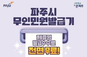제이앤엠뉴스 | 파주시는 시민들의 비용 부담을 줄이고 생활 편의를 높이기 위해 2026년 1월 1일부터 관내 무인민원발급기에서 발급되는 제증명 수수료를 전면 무료화한다고 밝혔다. 그동안 무인민원발급기 수수료는 국민기초생활수급자, 국가유공자 등 일부 대상자에게만 감면·면제 혜택이 적용돼왔으나, 이번 전면 무료화 조치로 파주시민 누구나 동일하게 무료 혜택을 받을 수 있게 됐다. 다만, 부동산 등기부등본은 무료화 대상에서 제외된다. 무인민원발급기는 지문 인증 또는 모바일 신분증 인증을 통해 간편하게 이용할 수 있으며, 파주시는 현재 40개소에서 총 45대의 무인민원발급기를 운영 중이다. 이 중 27개소는 연중무휴 24시간 이용 가능해, 야간이나 휴일에도 시민들이 편리하게 민원서류를 발급받을 수 있다. 파주시 관계자는 “이번 무인민원발급기 수수료 전면 무료화는 금액으로는 크지 않지만, 시민들이 일상에서 자주 체감할 수 있는 ‘생활 속 작은 혜택’”이라며 “앞으로도 시민의 일상을 세심하게 살피며 생활밀착형 행정서비스를 계속 추진해 나가겠다”라고 밝혔다. 한편, 무인민원발급기의 설치 위치 및 운영시간에 대한