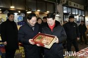 제이앤엠뉴스 | 구리시는 지난 2월 12일 설 명절을 앞두고 구리농수산물도매시장을 방문해 장보기 행사를 진행하고, 유통 종사자들의 애로사항을 청취하는 시간을 가졌다. 이번 행사에는 김진수 구리농수산물공사 사장, 최필승 농협공판장 장장, 이석우 구리청과㈜ 대표, 이동현 ㈜인터넷청과 대표, 장상현 수협공판장 장장, 양승휘 강북수산㈜ 대표, 정병찬 중도매법인연합회장 등 20여 명의 구리도매시장 관계자들이 함께했다. 이날 백경현 시장은 구리농수산물도매시장 내 중도매인 점포를 방문하며 과일과 해산물 등 제사용품을 직접 구매하여 현장 물가를 점검하고, 유통 종사자들을 격려했다. 또한 유통 현장의 목소리를 직접 듣고 업계의 어려움과 건의 사항을 경청하는 시간을 가졌다. 백경현 시장은 “구리농수산물도매시장은 산지 출하자가 납품한 농수산물을 합리적인 가격으로 소비자에게 공급하는 중요한 역할을 하고 있다”라며 “우리 구리도매시장 유통 종사자들이 이러한 사명을 성실히 수행하고 있는 것을 매우 자랑스럽게 생각한다”라고 말했다. 이어 “시와 구리농수산물공사는 유통 종사자들의 애로사항과 건의 사항을 적극 수렴해 상생하는 공