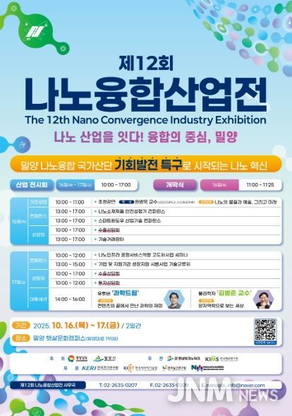 제이앤엠뉴스 | 경상남도는 오는 16일부터 17일까지 이틀간 밀양햇살문화캠퍼스에서 ‘나노산업을 잇다! 융합의 중심, 밀양’을 주제로 제12회 나노융합산업전(나노피아 2025)을 개최한다고 밝혔다.