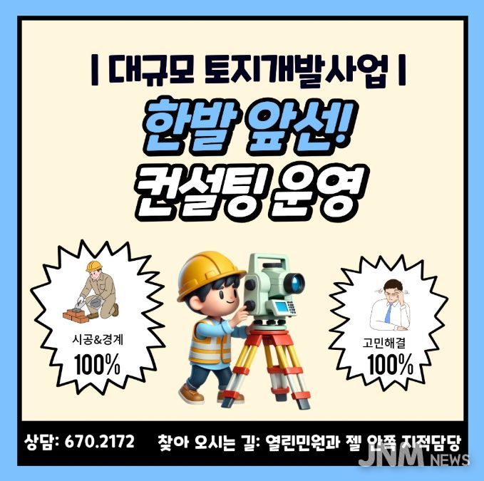 제이앤엠뉴스 | 고성군은 대규모 토지개발사업의 시행신고 단계부터 지적공부정리 완료 단계까지 한발 앞선 맞춤형 컨설팅을 운영하여 사업시행자와 측량수행자, 담당자가 효과적으로 각자의 업무를 수행할 수 있도록 지원하고 있다.