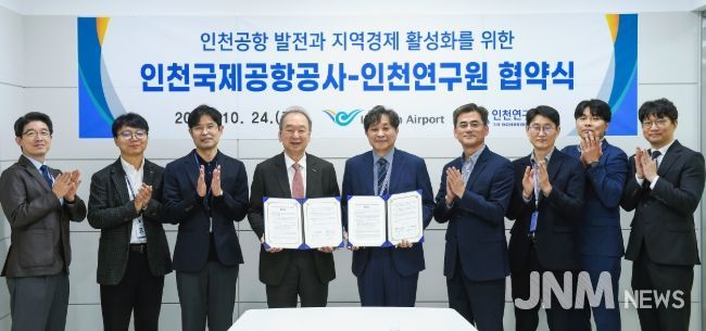 제이앤엠뉴스 | 인천국제공항공사는 24일 오전 인천공항 제2여객터미널 회의실에서 인천연구원과 인천공항 및 지역경제 발전을 위한 연구협력 강화 업무협약(MOU)을 체결했다고 밝혔다.