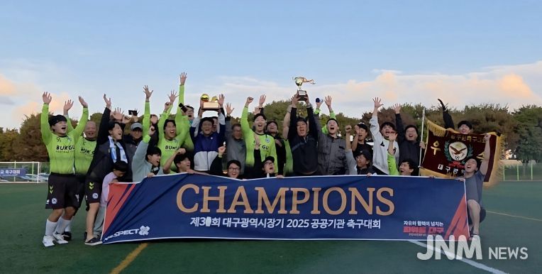제이앤엠뉴스 | 대구 북구청 축구동호회가 지난 10월 25일 열린 제31회 대구시장기 공공기관 축구대회 결승전에서 대구광역시청을 3:2로 꺾고 1997년 제7회 대회 이후 28년여 만에 우승을 차지했다.