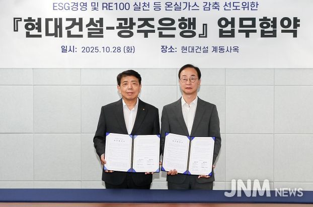 제이앤엠뉴스 | 광주은행이 현대건설(대표 이한우)과 손잡고 신재생에너지 보급 확대 및 RE100(재생에너지 100% 사용) 실천 가속화를 위한 ‘녹색 동맹’을 맺었다. 이를 통해 탈탄소 및 기후 대응에 앞장서며 지역 기업들의 친환경 전환을 선도할 계획이다.