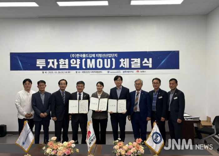 제이앤엠뉴스 | 전북특별자치도는 10월 29일 김제시와 함께 ㈜한국몰드김제와 총 123억 원 규모의 투자협약(MOU)을 체결했다고 밝혔다.