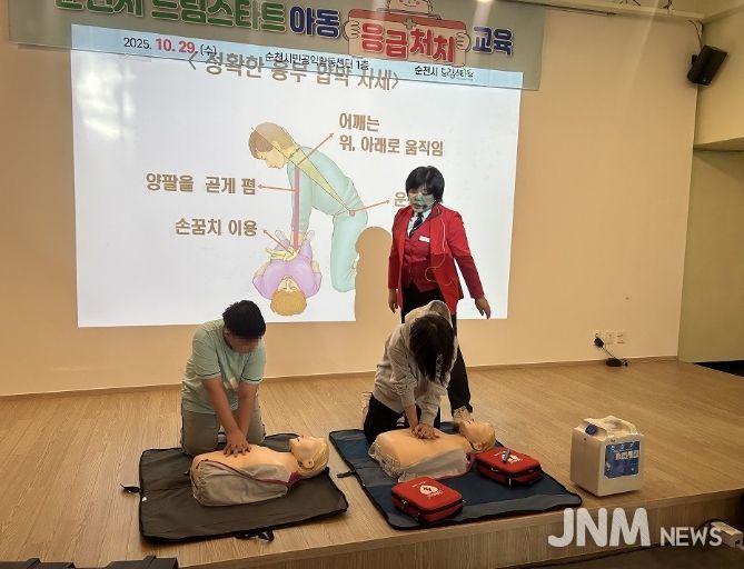 제이앤엠뉴스 | 순천시 드림스타트는 지난 29일 아동과 보호자 20명을 대상으로 공익활동 지원센터에서 “생명을 지키는 응급처치 교육”을 진행했다고 밝혔다.