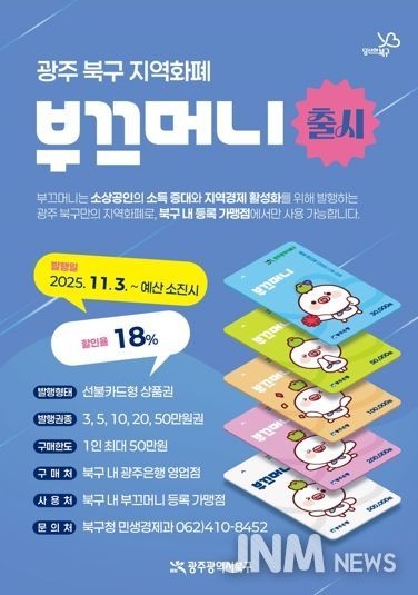 제이앤엠뉴스 | 광주광역시 북구는 지역경제 활성화를 위한 지역화폐 ‘부끄머니’가 11월 3일부터 본격 발행된다고 밝혔다.