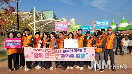 제이앤엠뉴스 | 경상남도는 5일 제25회 마산가고파국화축제장에서 ‘바가지요금 OUT! 정직한 가격 IN! 즐거운 축제’를 슬로건으로 바가지 요금근절을 위한 민관 합동 점검 및 캠페인을 벌였다.