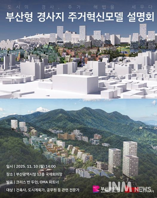 제이앤엠뉴스 | 부산시는 오늘(10일) 오후 2시 시청 국제회의장에서 세계적 건축그룹 오엠에이(OMA)와 함께 '도시의 경사, 주거 해법을 세우다 - 부산형 경사지 주거혁신모델 설명회'를 개최한다고 밝혔다.