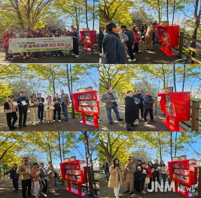 설치 현장에는 주민자치회 위원과 지역 주민들이 함께 참석해 숲속도서관 조성을 축하했으며, 자연 속 따뜻한 가을 햇살 아래에서 기념 촬영을 진행하며 지역 공동체의 소통과 나눔의 가치를 되새기는 시간을 가졌다.