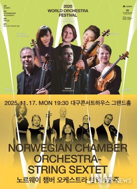 제이앤엠뉴스 | (재)대구문화예술진흥원 대구콘서트하우스는 오는 11월 17일 저녁 7시 30분, 그랜드홀에서 2025 월드오케스트라페스티벌’의 하나로 노르웨이 챔버 오케스트라 공연을 개최한다.