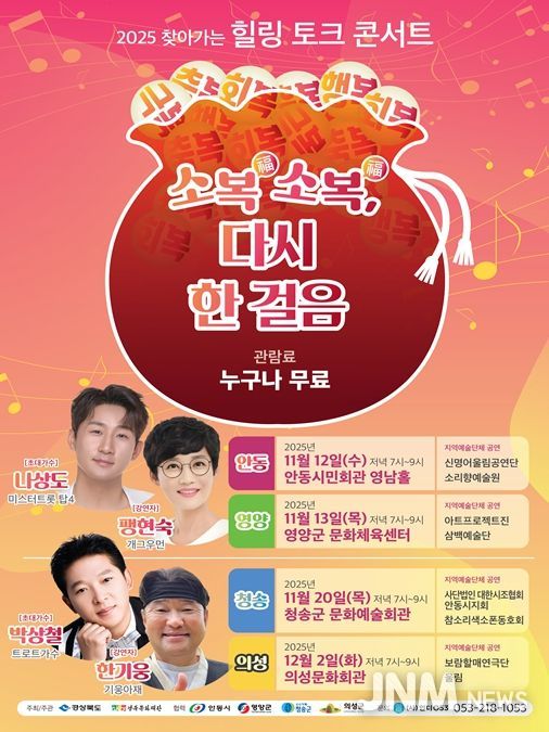 제이앤엠뉴스 | 경상북도와 경북문화재단은 상반기 대형 산불로 큰 피해를 본 안동, 영양, 청송, 의성 지역민을 위로하기 위한 치유형 문화예술행사 ‘찾아가는 힐링 토크 콘서트-소복소복, 다시 한 걸음’을 개최한다.