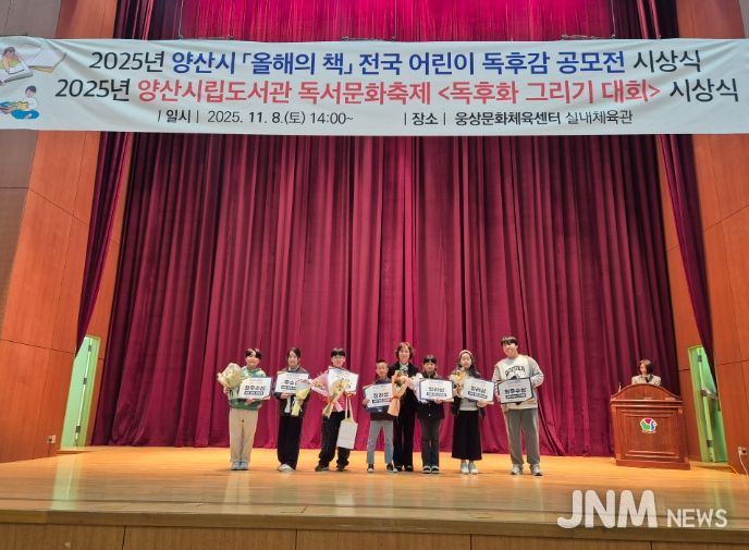 제이앤엠뉴스 | 양산시립도서관은 지난 8일 웅상문화체육센터 실내체육관에서 진행된 제10회 독서골든벨 식전행사에서 ‘올해의 책’ 전국 어린이 독후감 공모전 및 독후화 그리기 대회, 책 읽는 가족 시상식을 개최했다.