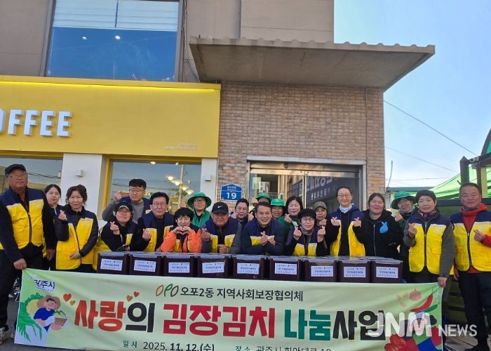 제이앤엠뉴스 | 광주시 오포2동 지역사회보장협의체는 12일 오포2동 매산2통에서 ‘사랑의 김장 나눔 행사’를 개최하고 어려운 이웃들에게 따뜻한 겨울 정을 나눴다.