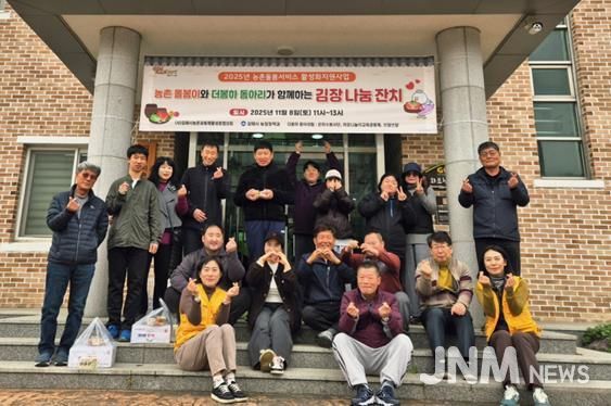 제이앤엠뉴스 | (사)김해시농촌공동체활성화협의회는 지난 8일 진영읍 더봉하센터에서 ‘2025년 농촌돌봄이와 더봉하동아리가 함께하는 김장나눔 잔치’를 열어 어르신과 발달장애인 가족을 초청해 따뜻한 나눔을 실천했다고 12일 밝혔다.