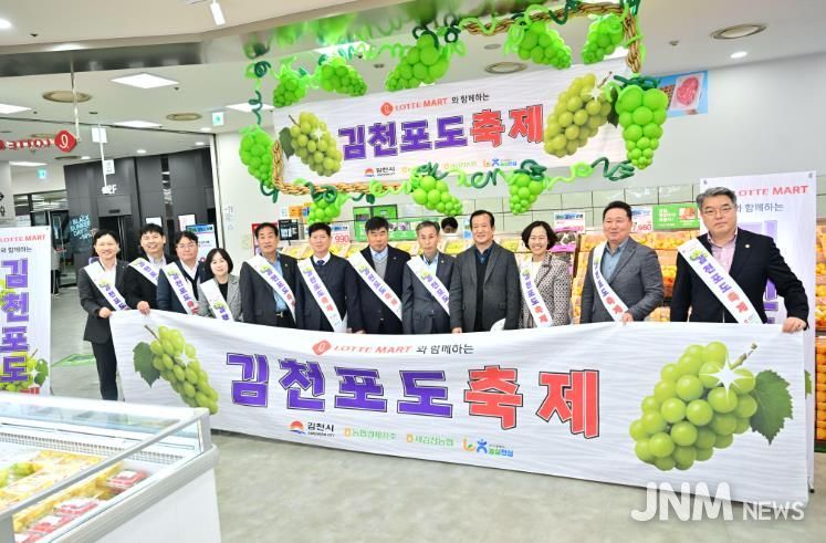 제이앤엠뉴스 | 김천시는 10일 롯데마트 제타플렉스 서울역점(서울 중구)을 방문하여 ‘김천포도(샤인머스켓) 특판행사’에 직접 참여했다.