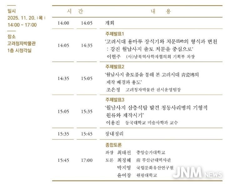제이앤엠뉴스 | 강진군 고려청자박물관이 오는 20일 ‘보월산에 깃든 월남사의 불교미술과 문화’라는 주제로 박물관 시청각실에서 학술심포지엄을 개최한다.