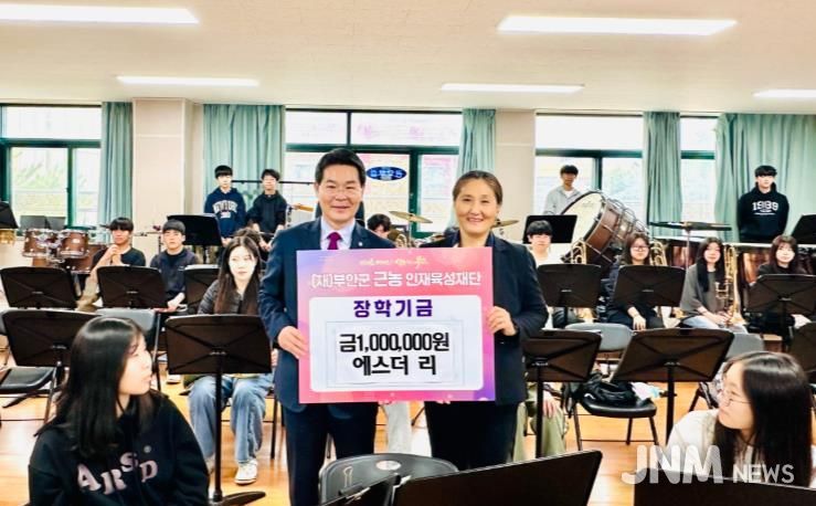 제이앤엠뉴스 | 부안군근농인재육성재단은 지난 8일 재독일 성악가 에스더 리가 부안초등학교 관현악단의 초청 방문 중 부안군근농인재육성재단에 장학금 100만원을 기부했다고 밝혔다.