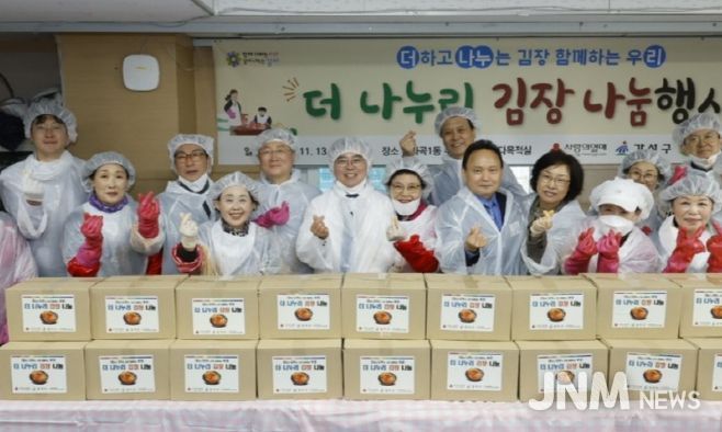 제이앤엠뉴스 | 진교훈 서울 강서구청장이 13일 오전 화곡1동주민센터에서 열린 ‘김장 나눔행사’에 참석해 어려운 이웃에 전달할 김장김치를 담갔다.