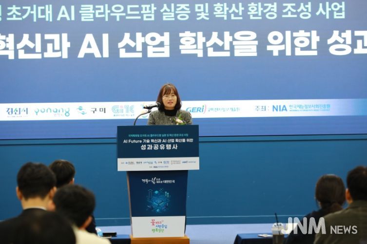 제이앤엠뉴스 | 경산시는 19일 천마아트센터 이시원 글로벌 컨벤션홀에서 AI 관련 기업·대학·연구기관 등 200여 명이 참석한 가운데 '초거대 AI 클라우드팜 실증 및 AI 확산 환경 조성' 사업 성과공유회를 개최했다.