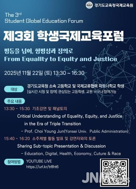 제이앤엠뉴스 | 경기도교육청국제교육원이 22일 국내외 학생을 대상으로 ‘제3회 학생국제교육포럼’을 개최한다.