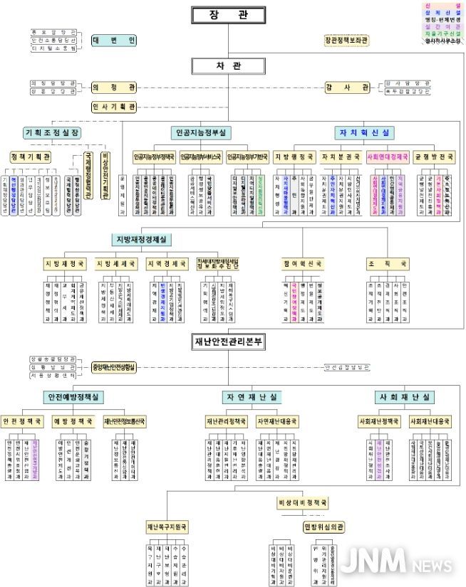 제이앤엠뉴스 | 행정안전부는 인공지능(AI), 지방정부 및 국민안전 정책 수준을 한단계 더 높이고, 국정과제 추진동력을 강화하기 위한 조직개편을 실시했다고 밝혔다.