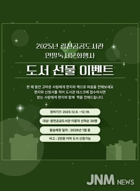 군 관계자는 “이번 연말독서 문화행사를 통해 도서관에 대한 긍정적인 인식이 확산되기를 바라며, 앞으로도 더 많은 이용자가 광천공공도서관을 이용할 수 있기를 바란다”고 말했다.