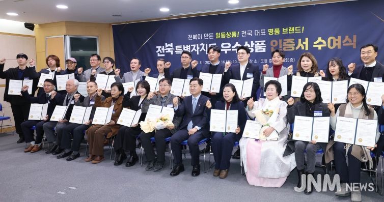 제이앤엠뉴스 | 전북특별자치도는 16일 도청에서‘2026년 전북특별자치도 우수상품 인증서 수여식’을 열고, 품질과 성장성을 갖춘 도내 중소기업 제품 32개를 우수상품으로 선정했다.