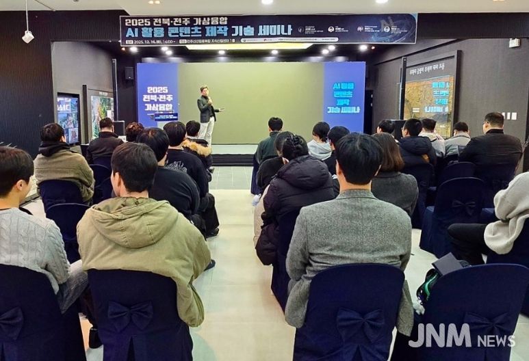 특히 이날 세미나에서는 △추재만 KBS 촬영감독의 ‘AI와 콘텐츠 제작의 미래’ △유남규 한국미디어아트산업협회 이사의 ‘AI를 활용한 콘텐츠 제작 기법’ △서대웅 전주소통협력센터장의 ‘2026년 주목해야할 ’사람‘에 대한 트렌드 딥 다이브!’ △박진호 고려대학교 연구교수의 ‘모빌리티 Media Bus 현황과 전주 XR-Bus 전망’ 등 국내 최고 수준의 전문가들이 연사로 참여해 산업현장의 실제 사례와 제작 기술, 비즈니스 전략을 공유했다.