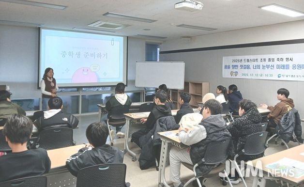 이번 초등 졸업 행사에서는 명호중학교 상담교사 천숙 강사를 초빙하여 ‘슬기로운 예비 중학교 생활’이라는 주제로 중학교 진학에 도움이 되는 강의를 진행하고, 초등 졸업 선물로 10만 원 상당의 상품권을 지원했다.