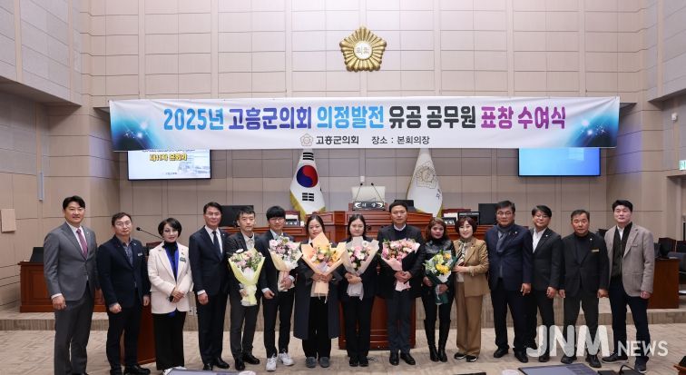 제이앤엠뉴스 | 고흥군의회는 12월 19일 제342회 제2차 정례회 폐회 후 본회의장에서 2025년도 4분기 의정발전 유공 공무원 표창 수여식을 개최했다.