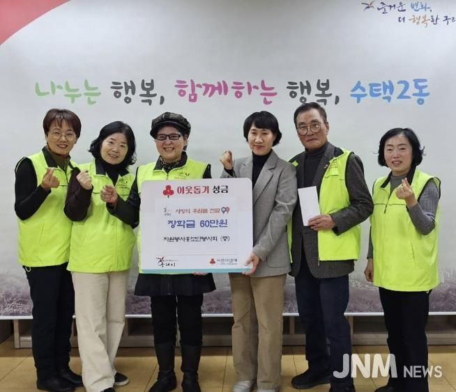 제이앤엠뉴스 | 구리시 수택2동 행정복지센터는 지난 18일 구리자원봉사홍보단봉사회로부터 저소득 청소년들의 안정적인 학업 지원을 위한 장학금 60만 원을 전달받았다고 밝혔다.
