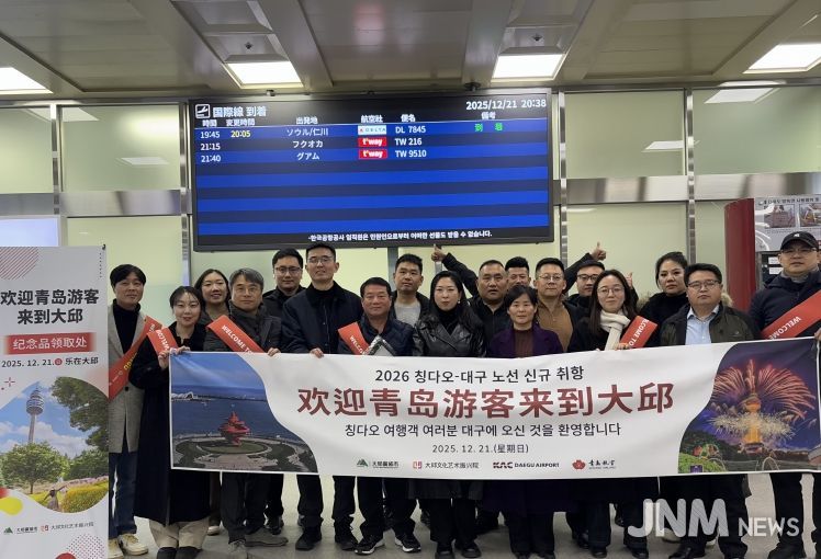 제이앤엠뉴스 | 대구광역시와 대구문화예술진흥원 관광본부는 대구국제공항에서 ‘칭다오-대구’ 신규 노선 취항을 맞아 중국인 관광객을 위한 환영 행사를 마련하고 본격적인 맞이에 돌입했다.
