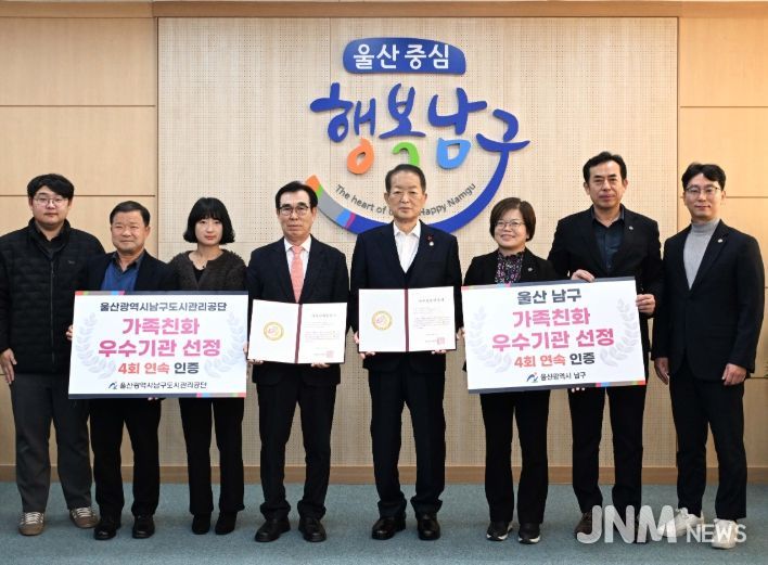 제이앤엠뉴스 | 울산 남구는 성평등가족부가 주관하는 ‘2025년 가족친화 인증’ 재인증 기관으로 선정돼 4회 연속 가족친화 인증을 획득했다고 19일 밝혔다.