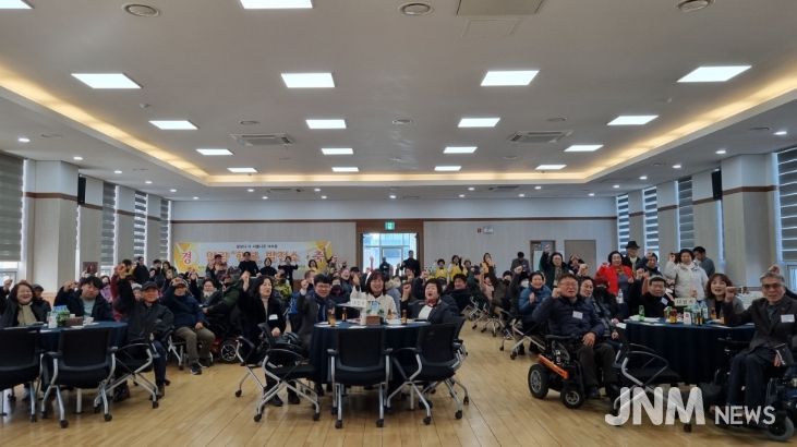 제이앤엠뉴스 | 한국교통장애인협회 경산시지회(지회장 송화자)는 2025. 12. 22.(월) 경산시 압량읍 행복발전소에서 시민 등 100여명이 참석한 가운데 “장애인 화합 작은 음악회”를 개최했다.